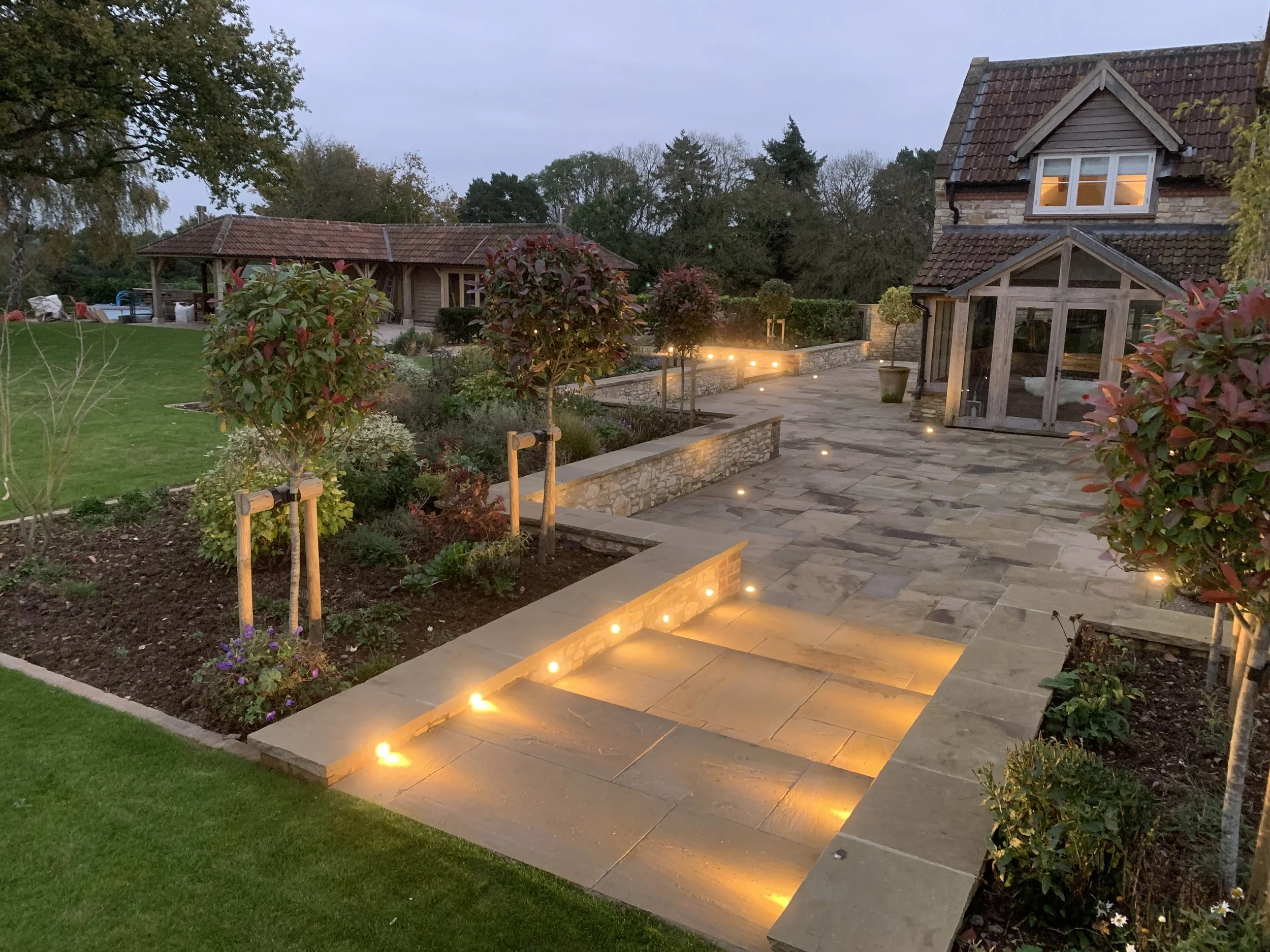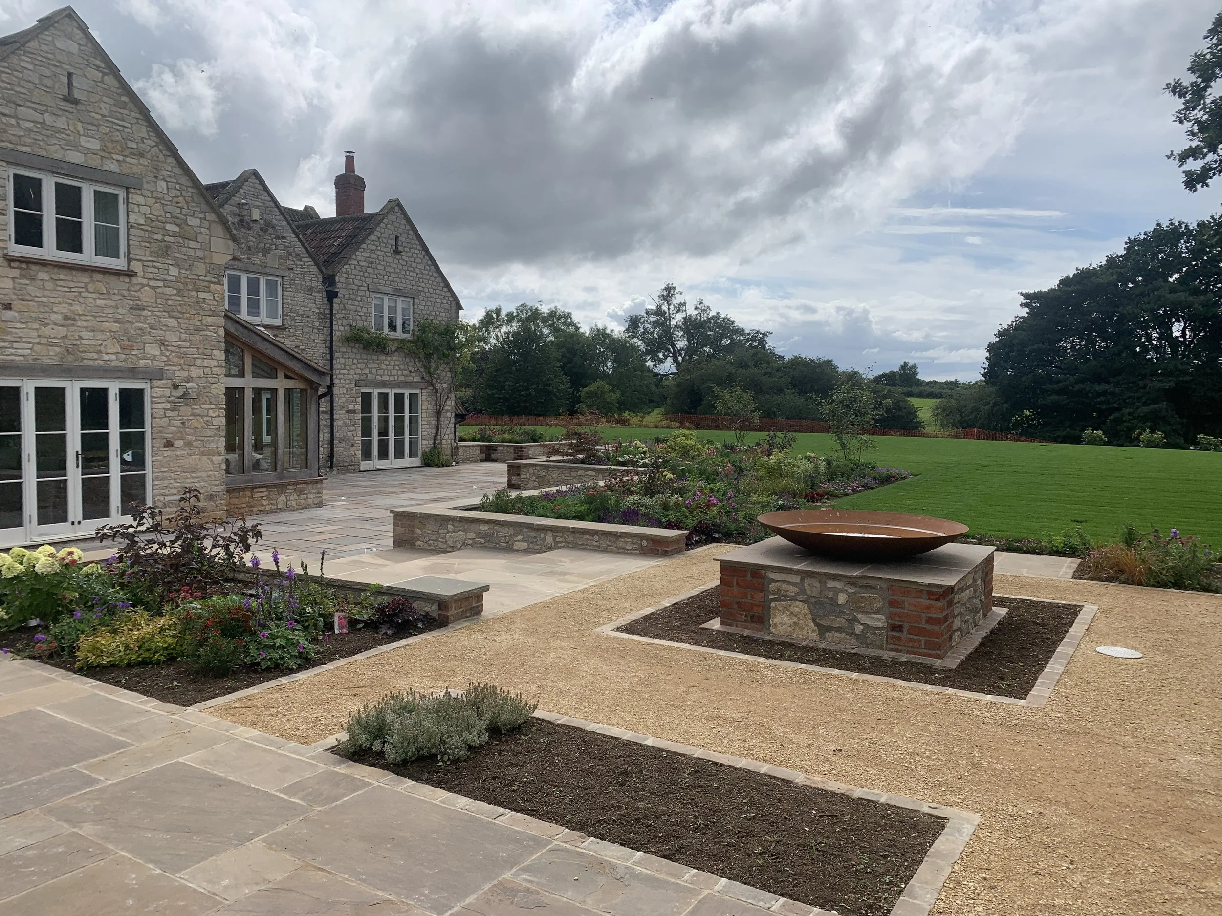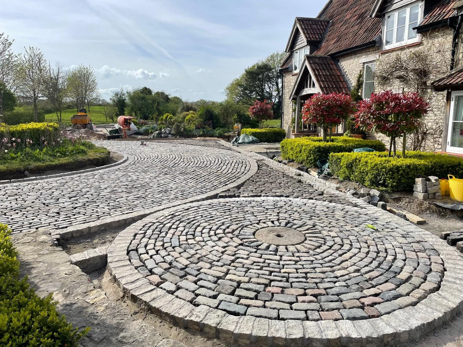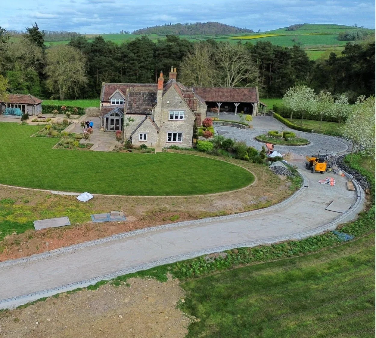 We are fortunate to have been working at this stunning property since 2015, being involved in numerous projects in the garden over the past decade as well as being responsible for the maintenance of the grounds. Our initial input was to carry out groundworks to alleviate surface flooding across an area of lawn through installation of land drains. Since then we have carried out landscaping to include the design and build of a natural pond, numerous planting projects, new lawns, walls, patios and most recently the installation of a 150 meter cobble driveway.